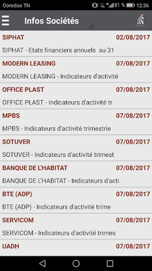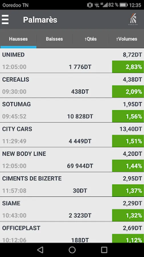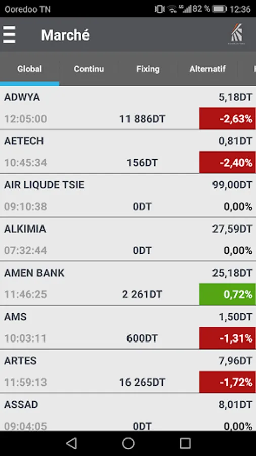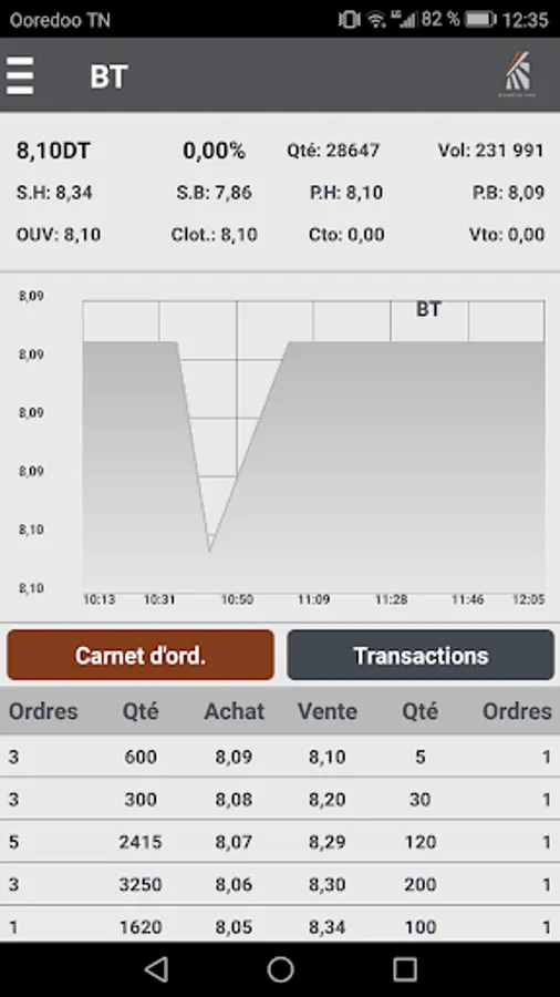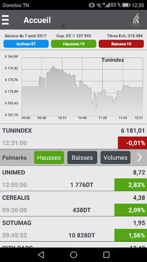 - Visualization of indices and market quotations of the Tunis Stock Exchange.