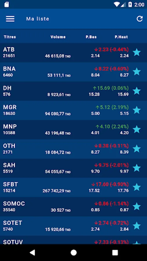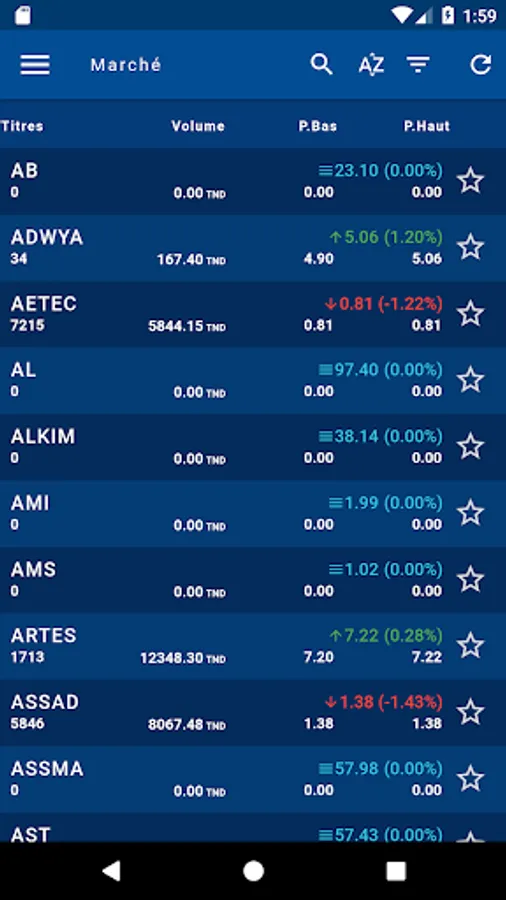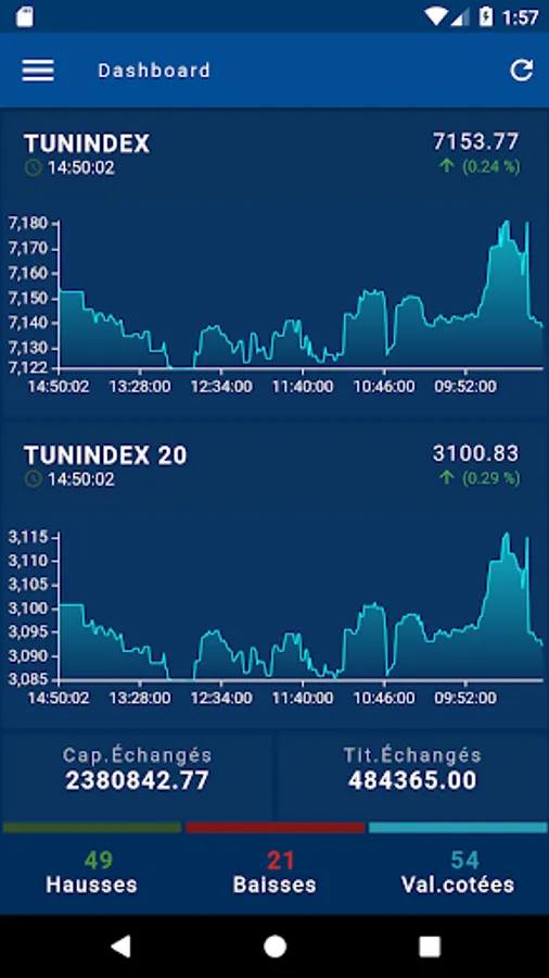 - Visualization of indices and market quotations of the Tunis Stock Exchange.