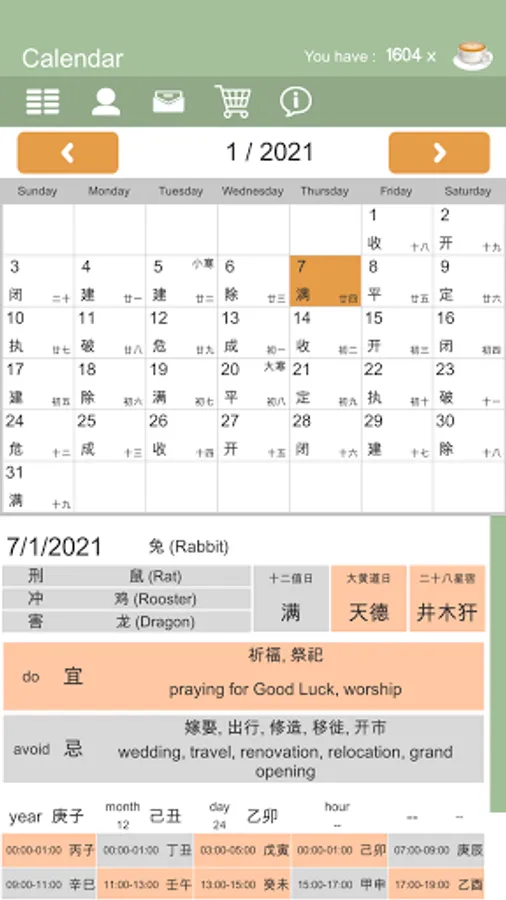 -Find and select auspicious dates for important events (such as weddings, moving, decoration and opening)