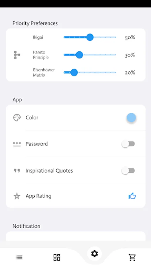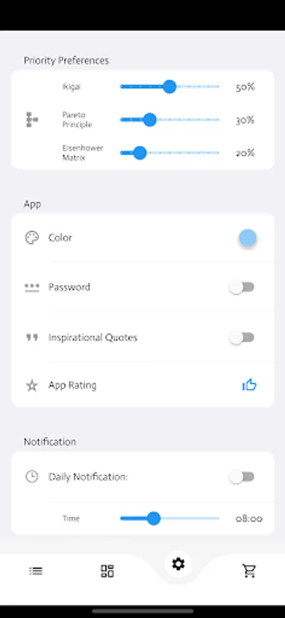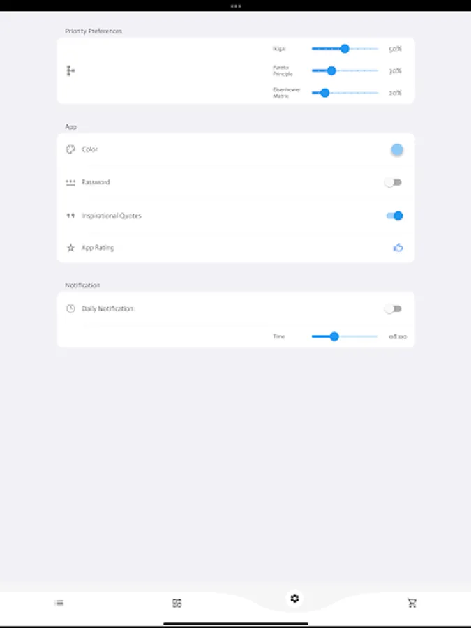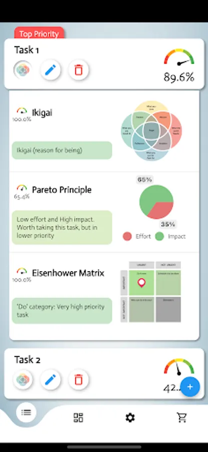 A variety of tools are used to evaluate and prioritize your goals in this app: