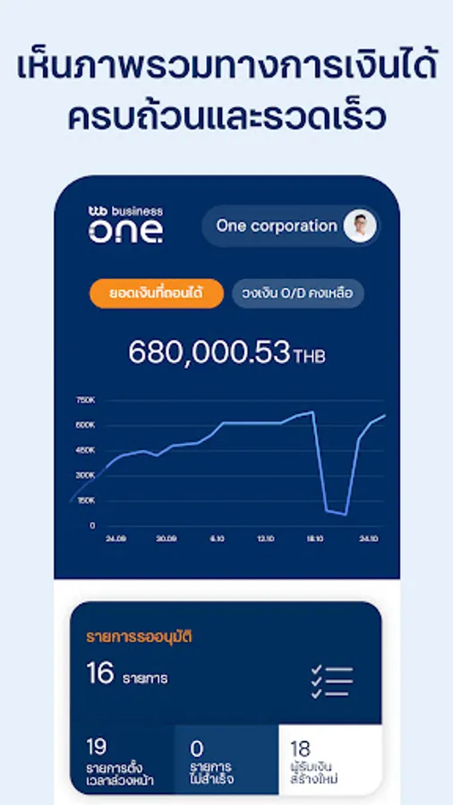 ttb business one is the completed digital banking platform for corporate clients and SME that help you to fully control your business anywhere, anytime. All your business needs can be managed in one service with 3-core competencies.
