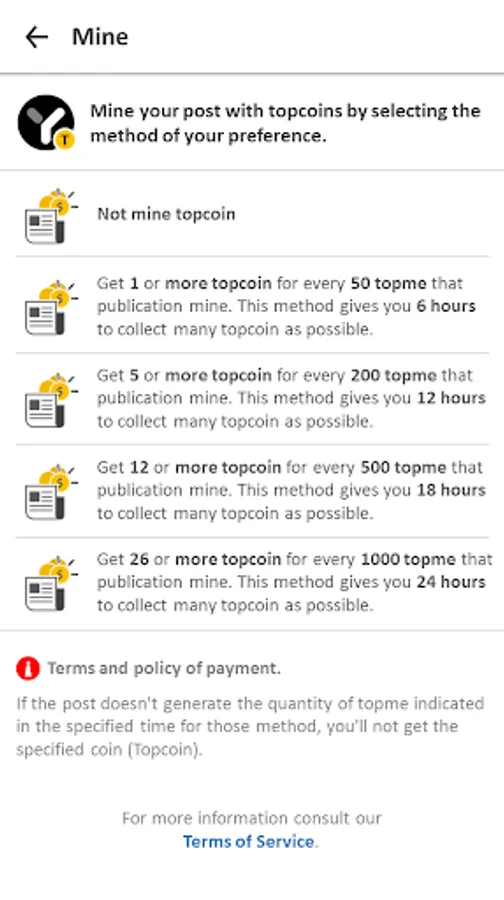 · Mine the posts to gain ‘Topcoin’ coins