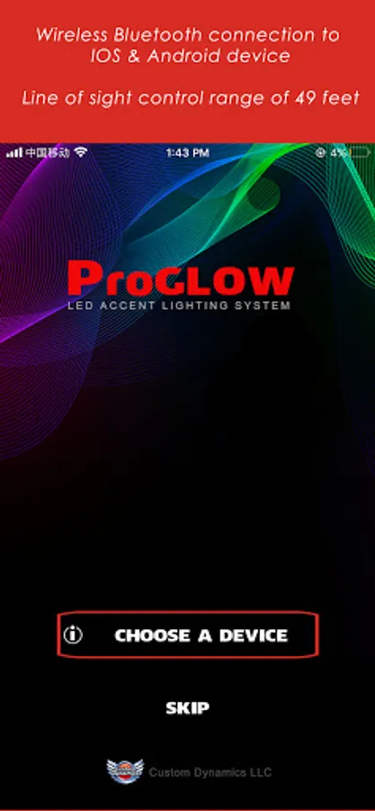 ProGLOW® app connects to the Custom Dynamics® ProGLOW® or Magical Wizards™ motorcycle LED lighting system to customize and control your color changing lights. Easy to navigate interface allows for up to three zones to be controlled and customized independently with programmed solid color or color changing animation modes. Unlimited color combinations can be selected using the color wheel or color-match technology with camera access while easy to use sliders let you fine-tune the brightness and speed of each movement. ProGLOW® can also be synced with music for a complete audiovisual experience. Optional brake alert function can be enabled for increased safety while riding. While added battery monitor, timer and security features give you control of your lights when out of sight.