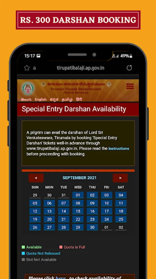 - Tirumala Rs. 300 Darshan Booking