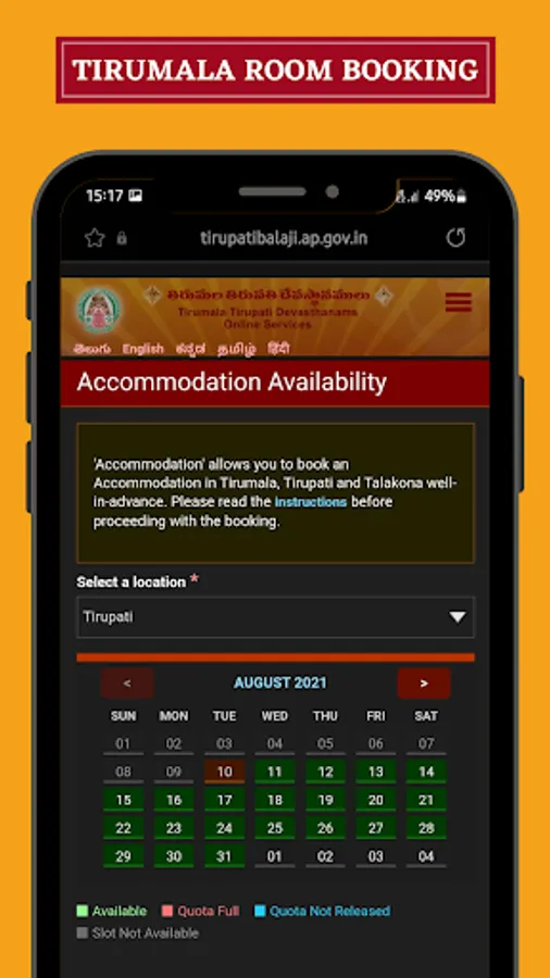 Tirumala Tirupati Online Booking is a easy interface app for pilgrims visiting to Tirumala for Darshan. Lakhs of pilgrims get lost in Tirumala without knowing how to have Darshan. This app helps pilgrims visiting Tirumala and Tirupati and have Darshan, Accommodation and local travel with much more ease.