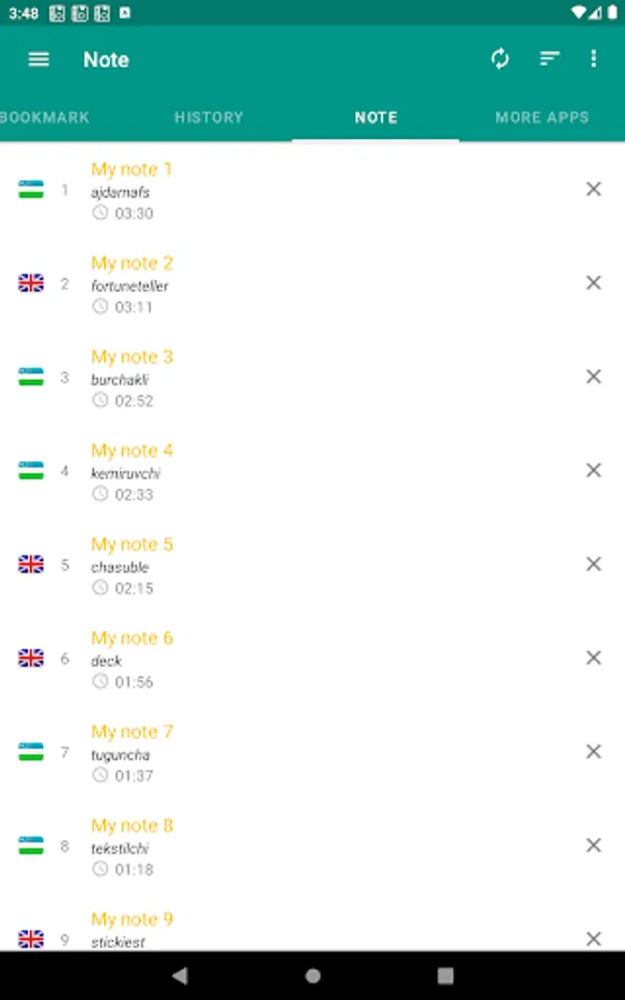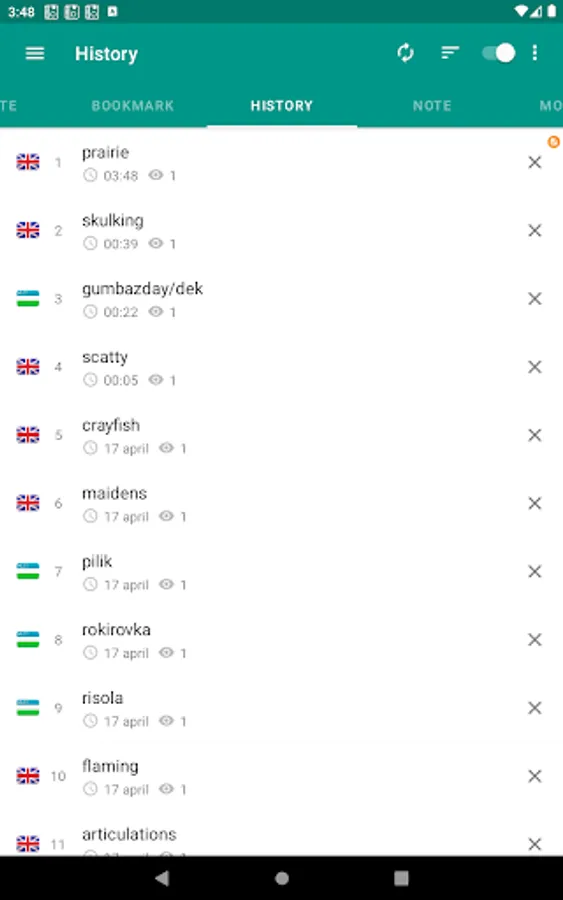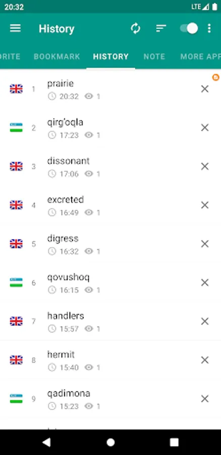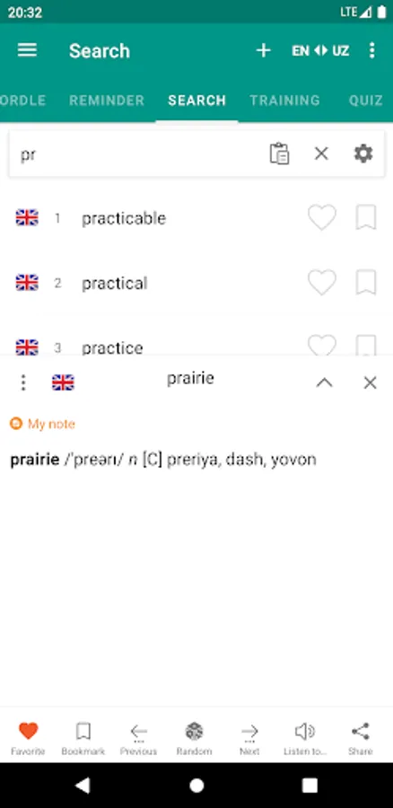 Uzbek to English & English to Uzbek is a free offline dictionary (vocabulary) with easy and functional user interface, covers over 100.000 words.