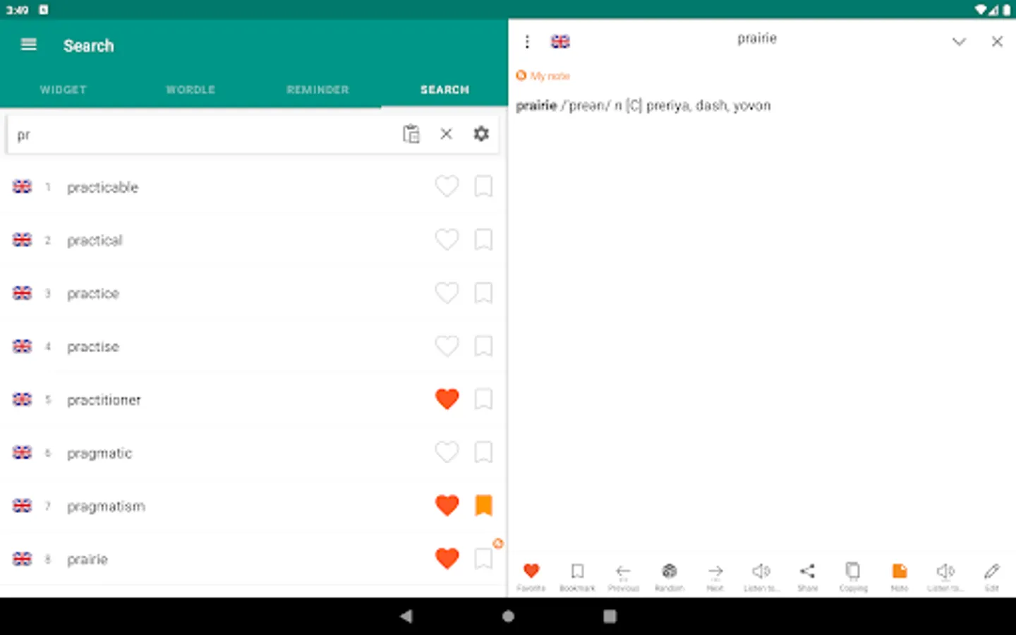 Description window is opened as clicking on the word. You can minimize and maximize the description window with swipe function.