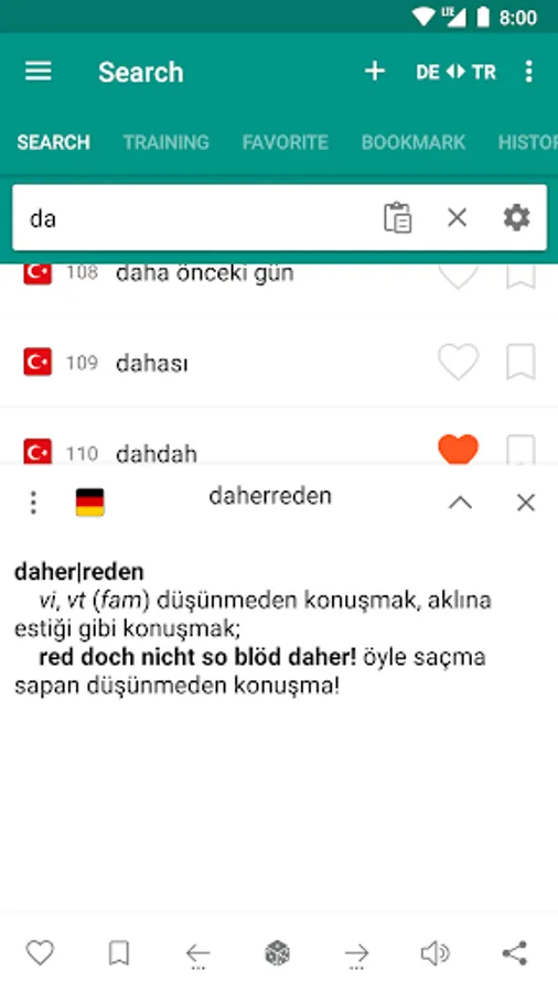 TTdictionary german to turkish & turkish to german (Deutsch Türkisch Wörterbuch) is a free offline dictionary (vocabulary) with easy and functional user interface, covers over 90.000 words.