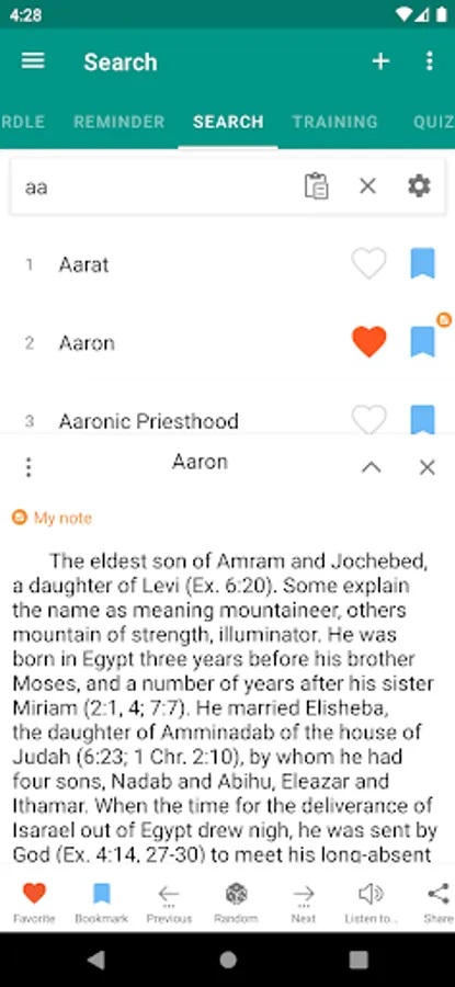 Favorite and Bookmark: Personalize your Bible study experience by marking your favorite entries and bookmarking important passages for quick access later. Seamlessly navigate through the app and rediscover your most cherished verses effortlessly.