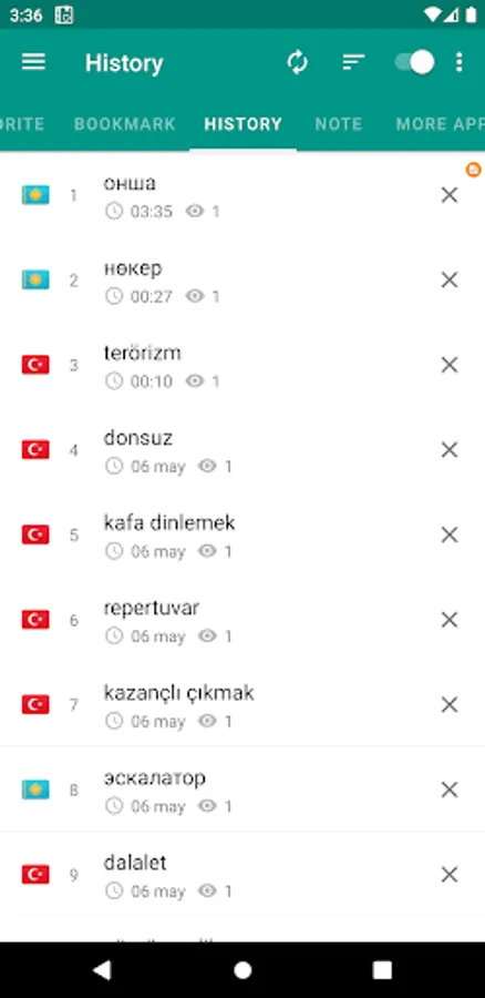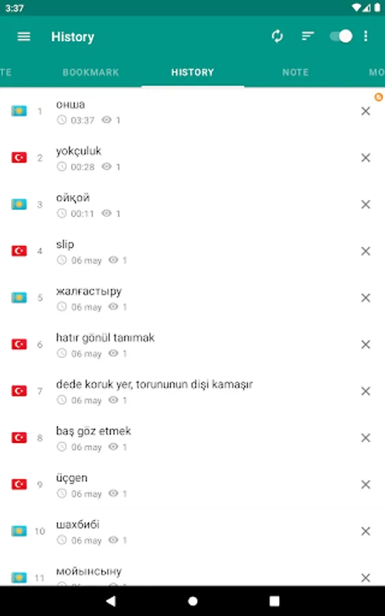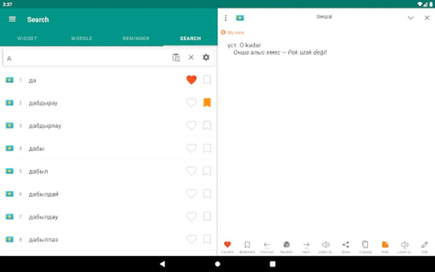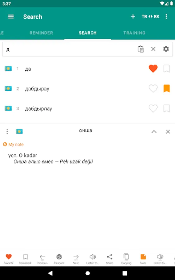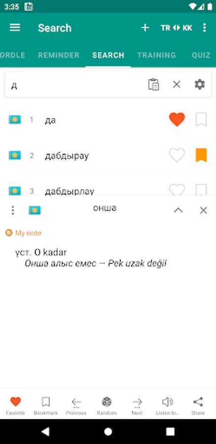 Download "Kazakh-Turkish dictionary" now and enhance your vocabulary in an easy and convenient way! This app is free to use and works offline, making it a valuable tool for language learners. Don't miss out on this comprehensive dictionary app for expanding your language skills!