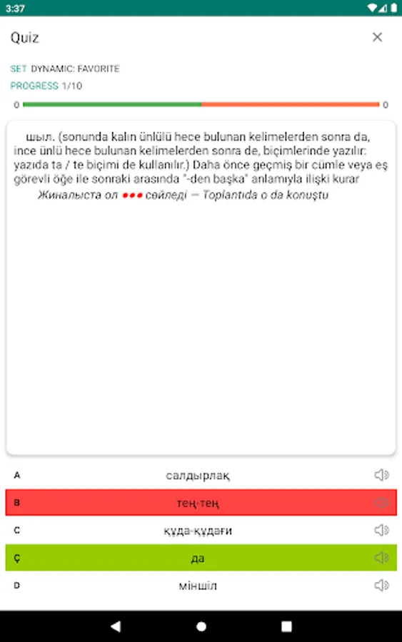 Learn new words effortlessly with the free "Kazakh-Turkish dictionary" app! This app is free to use and works offline, making it a valuable tool for language learners. With over 100,000 words included, this app is a comprehensive tool for expanding your vocabulary.