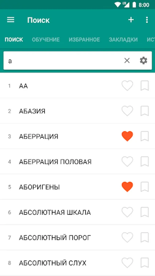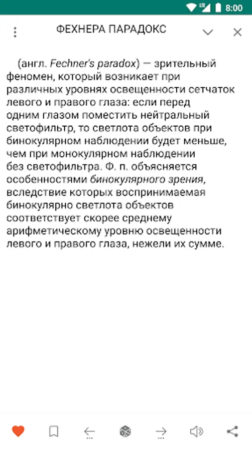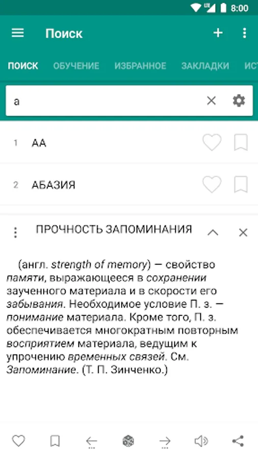 • Search option, the audio and the ability to share a word selected in the Description window.