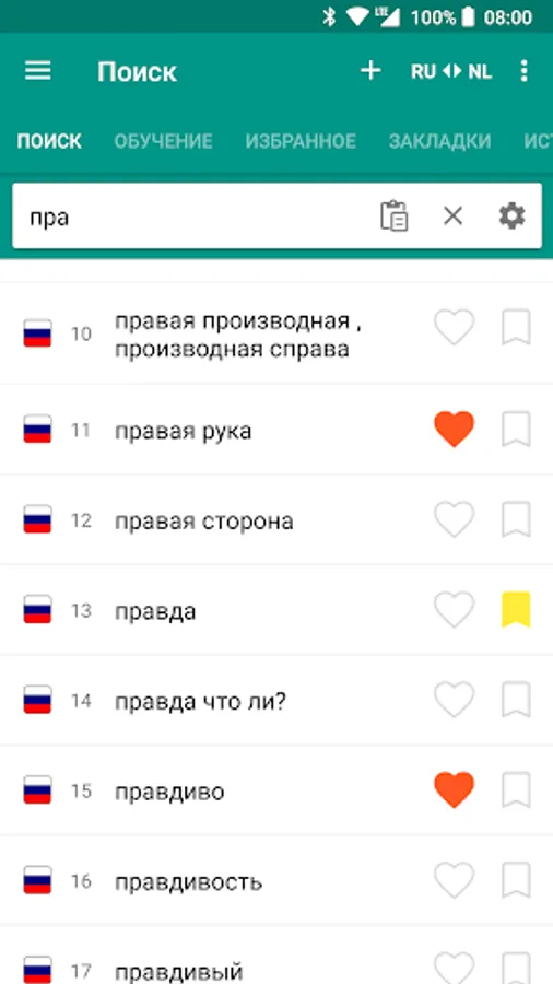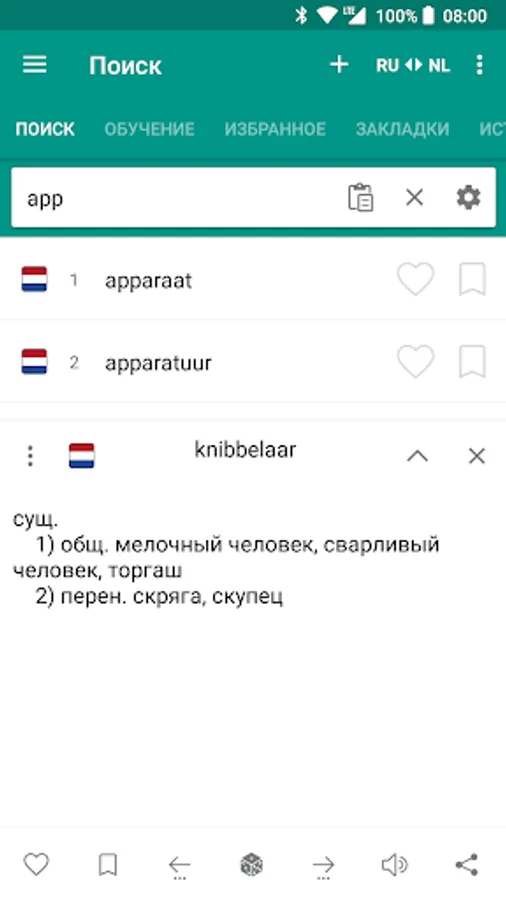 Russian to Dutch & Dutch to Russian is an offline dictionary (vocabulary) with easy and functional user interface, covers over 125.000 words.