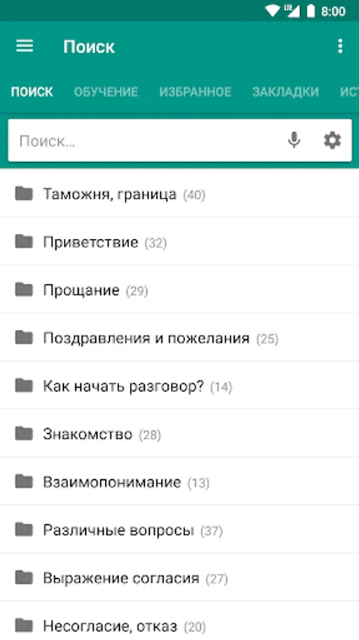 Applications are no internet connection . For your convenience, the material is divided into categories: Welcome, Introductions, Thanks, Time, Weather, catering, restaurant, cafe, shop, shopping, traveling and so on..
