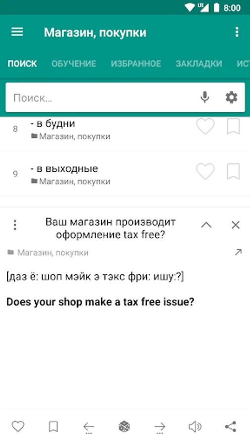 Offline Russian-English phrase book for tourists and lovers of the English language.