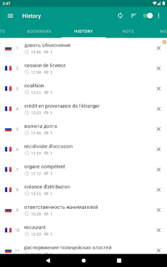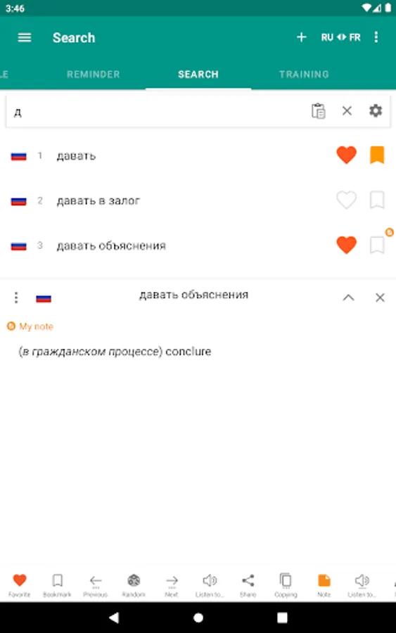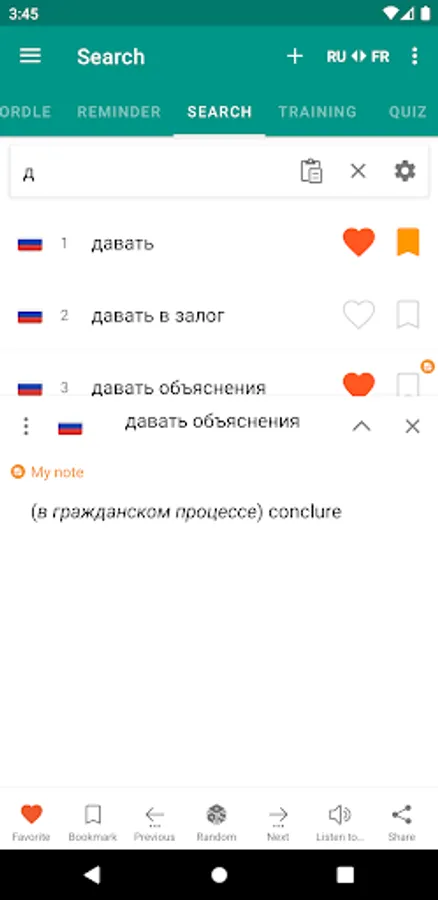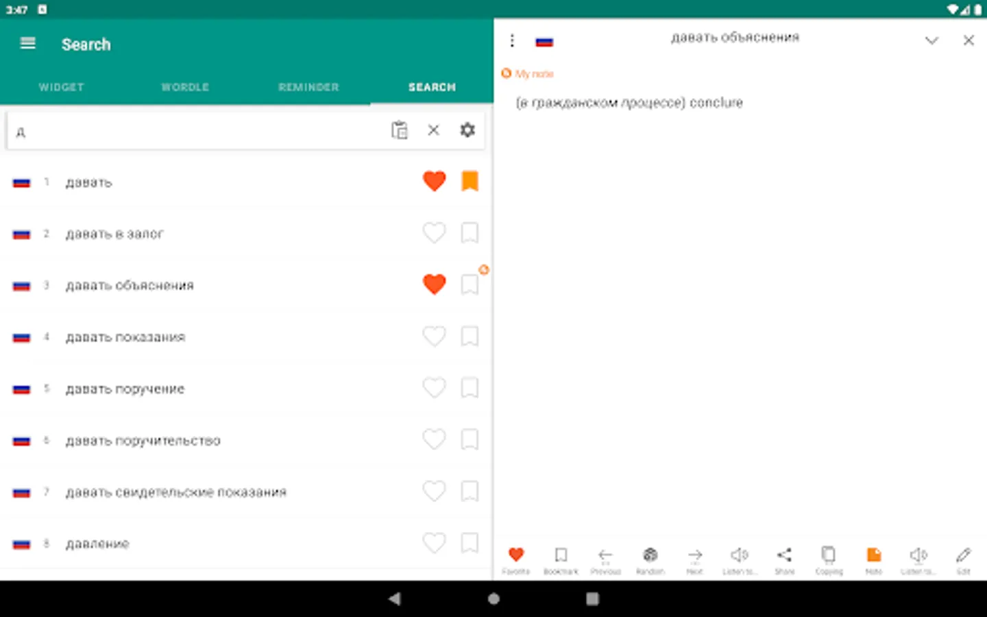 Learn new words effortlessly with the free "Russian-french and french-russian offline law dictionary" app! This app is free to use and works offline, making it a valuable tool for language learners. With over 100,000 words included, this app is a comprehensive tool for expanding your vocabulary.
