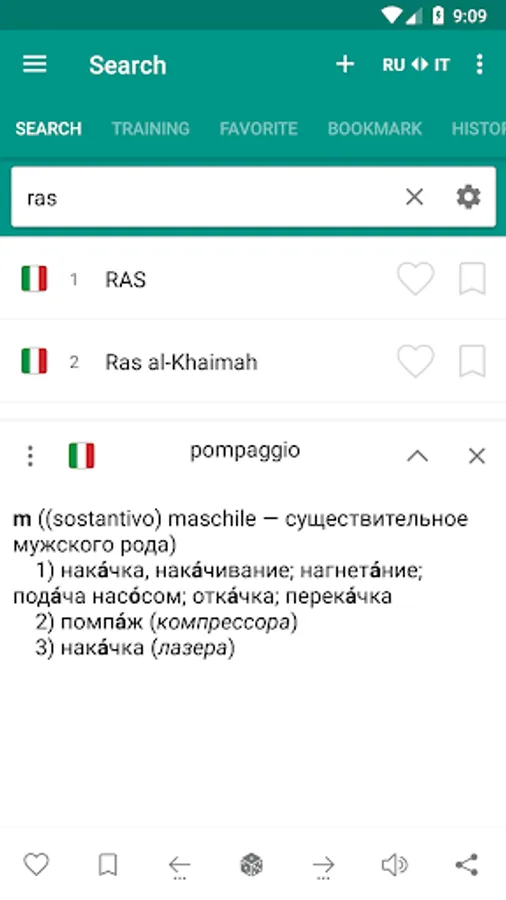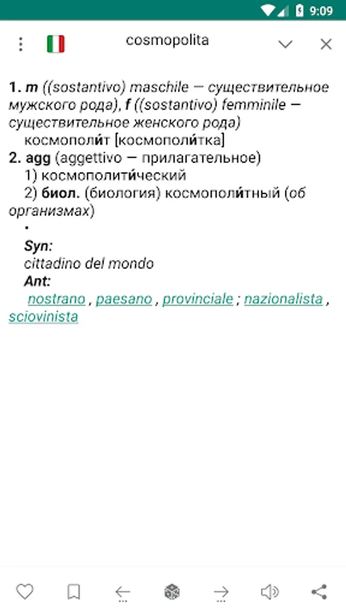 Russian to Italian & Italian to Russian is a free offline dictionary (vocabulary) with easy and functional user interface, covers over 150.000 words.
