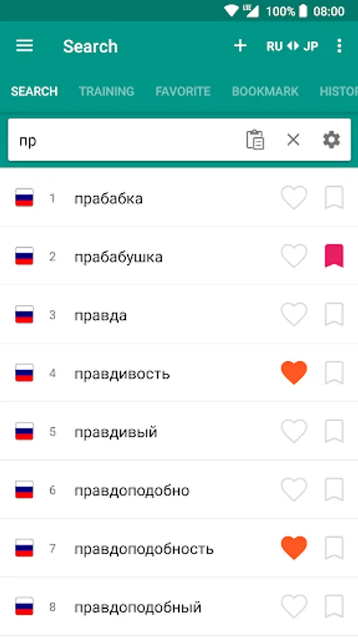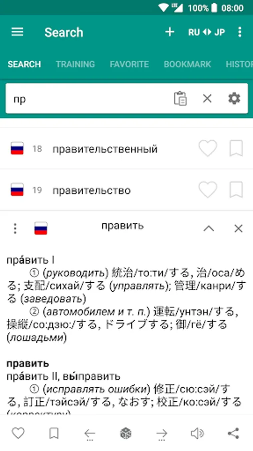 Russian to Japanese & Japanese to Russian is a offline dictionary (vocabulary) with easy and functional user interface, covers over 222.000 words.