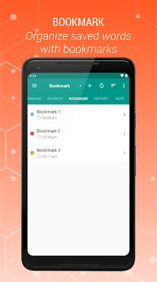 • Creating bookmark and adding words to bookmark