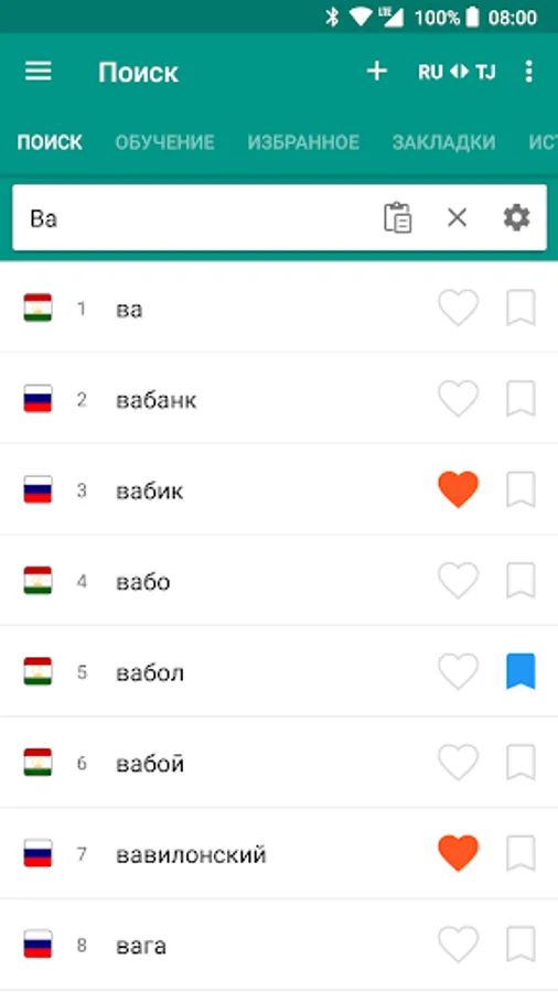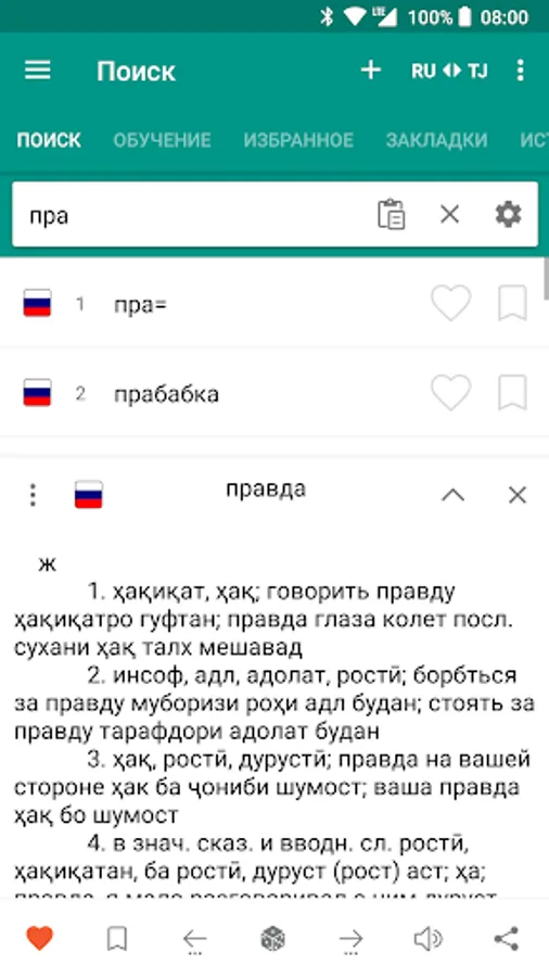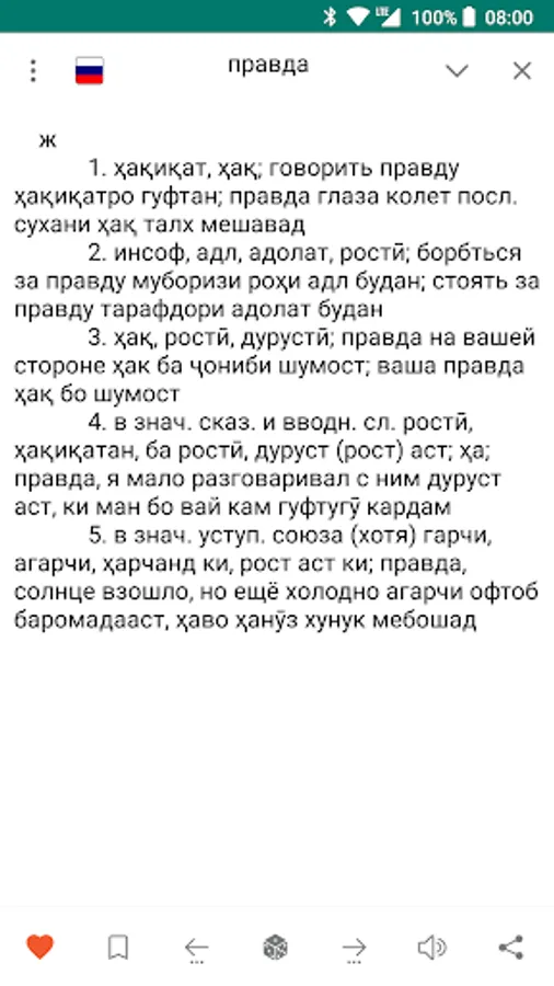 Russian-Tajik and Tajik-Russian offline dictionary with a lightweight and functional interface covering more than 110.000 words.
