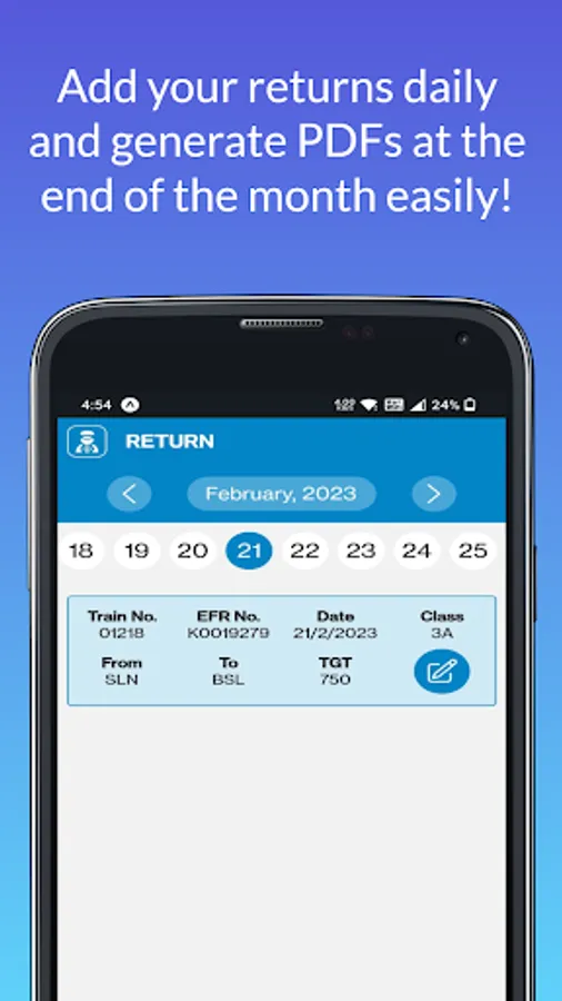 - Add your daily Returns and can keep track of them.