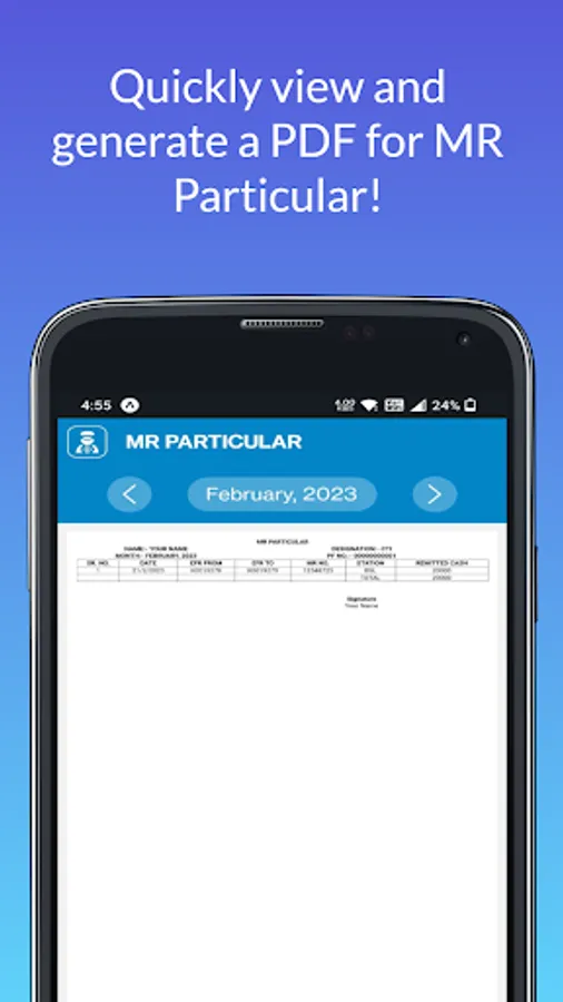 - Generate PDFs for Returns, Summary, and MR particulars for easy sharing and printing.