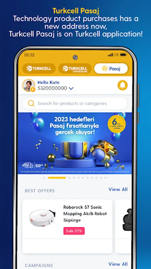 You do not need to be a Turkcell customer to use Turkcell app. Even if you are not a Turkcell customer, you can use Turkcell app free of charge. You can easily switch to Turkcell Pasaj and take the advantage of many technological products with up to 36 months of installments and free shipping.