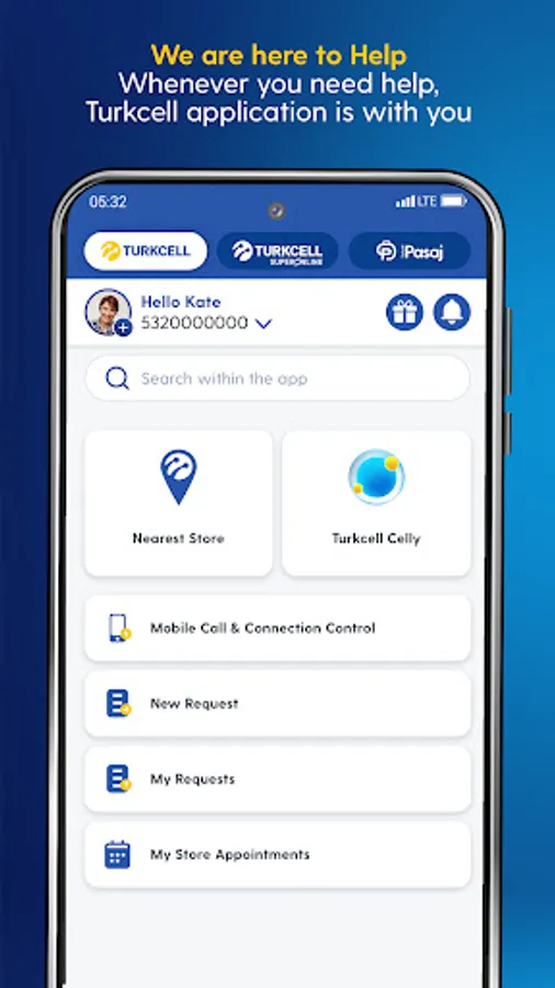 You can also perform many transactions from the welcome screen without logging into the Application. For your loved ones who are Turkcell users, you can make top-up and send packages as a gift. You can also transfer your line to Turkcell or request new lines, apply for fixed internet and track status of your applications, apply for Superbox and discover Turkcell applications.