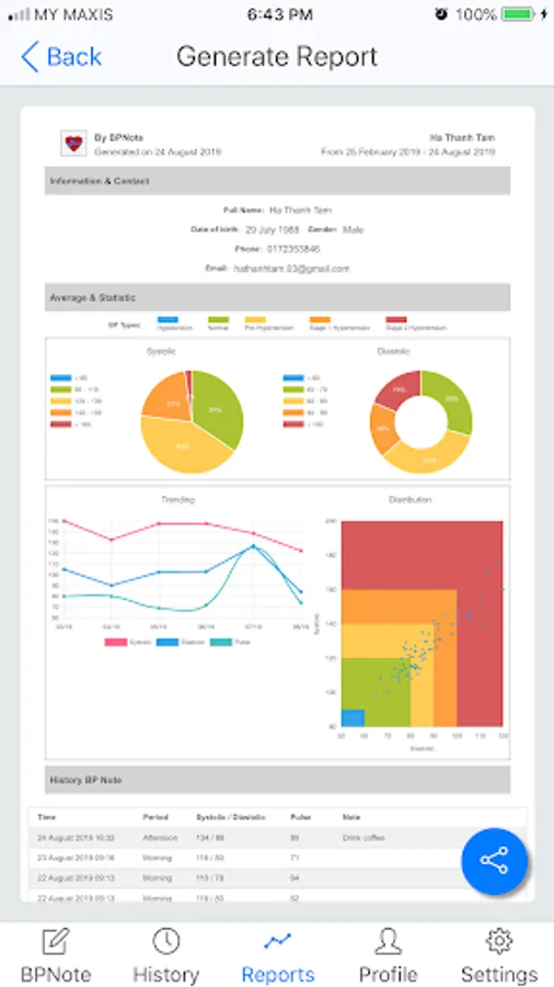 4. Export / Share PDF report to doctors.