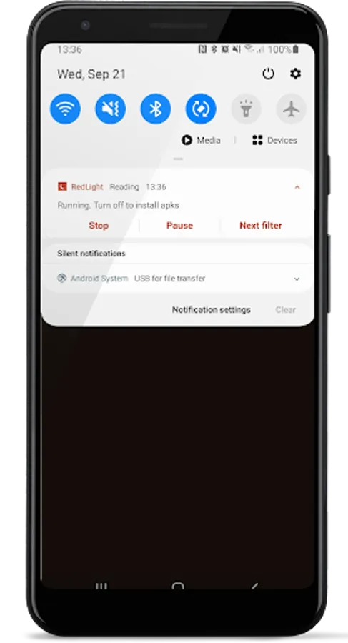 Blue light may suppress the production of melatonin, the sleep hormone. RedLight filters out blue light and dims your screen below the normal minimum, so you can use your phone comfortably at night.