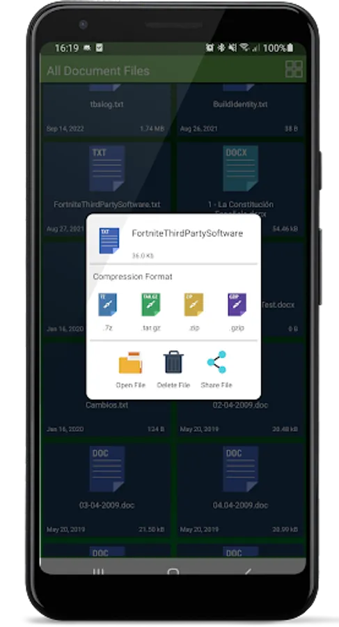 Zip Unzip File app allows you to compress and unzip any kind of file easily.