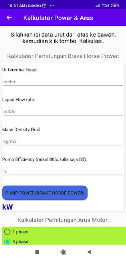 3.Power Power, which is a calculator for calculating the Power of the Pump. Here is also equipped with a large flow so that users can record the needs of the flow per day. The record results can be used to determine the health of the pump.