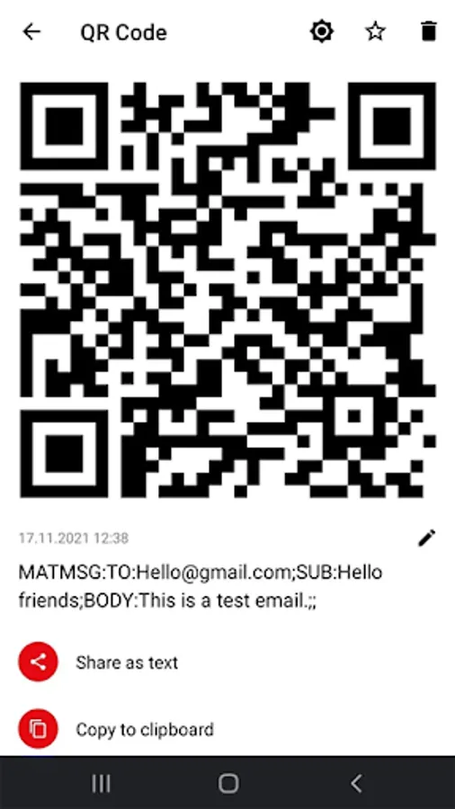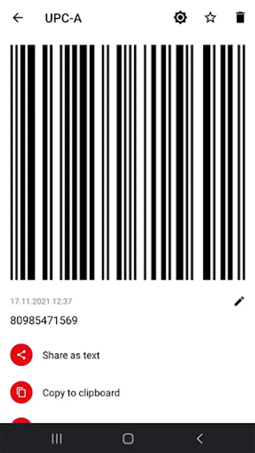 You can view your QR or barcode in history page. Collecting all your scanned and created codes there. You can filter by categories and sorting by date or QR code's name.