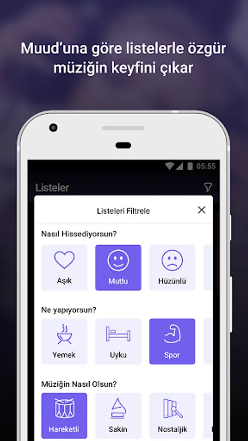 We made lists page by using the full muud. Now, with filtering feature located at the top right of thousands of playlists ready at that moment how you feel, what you want and how the lack of music do you can determine yourself completely.