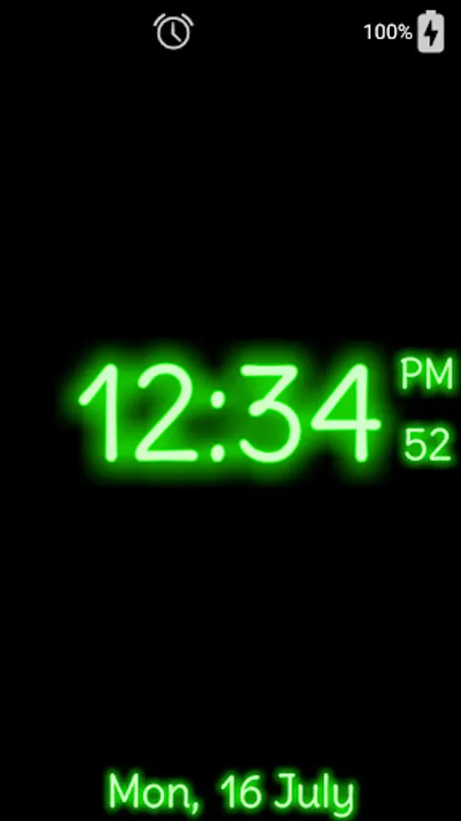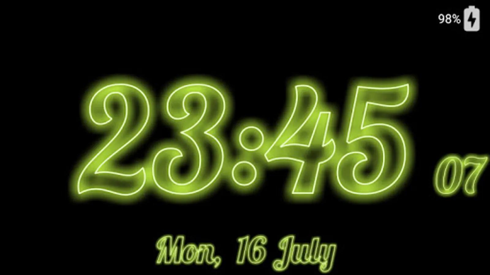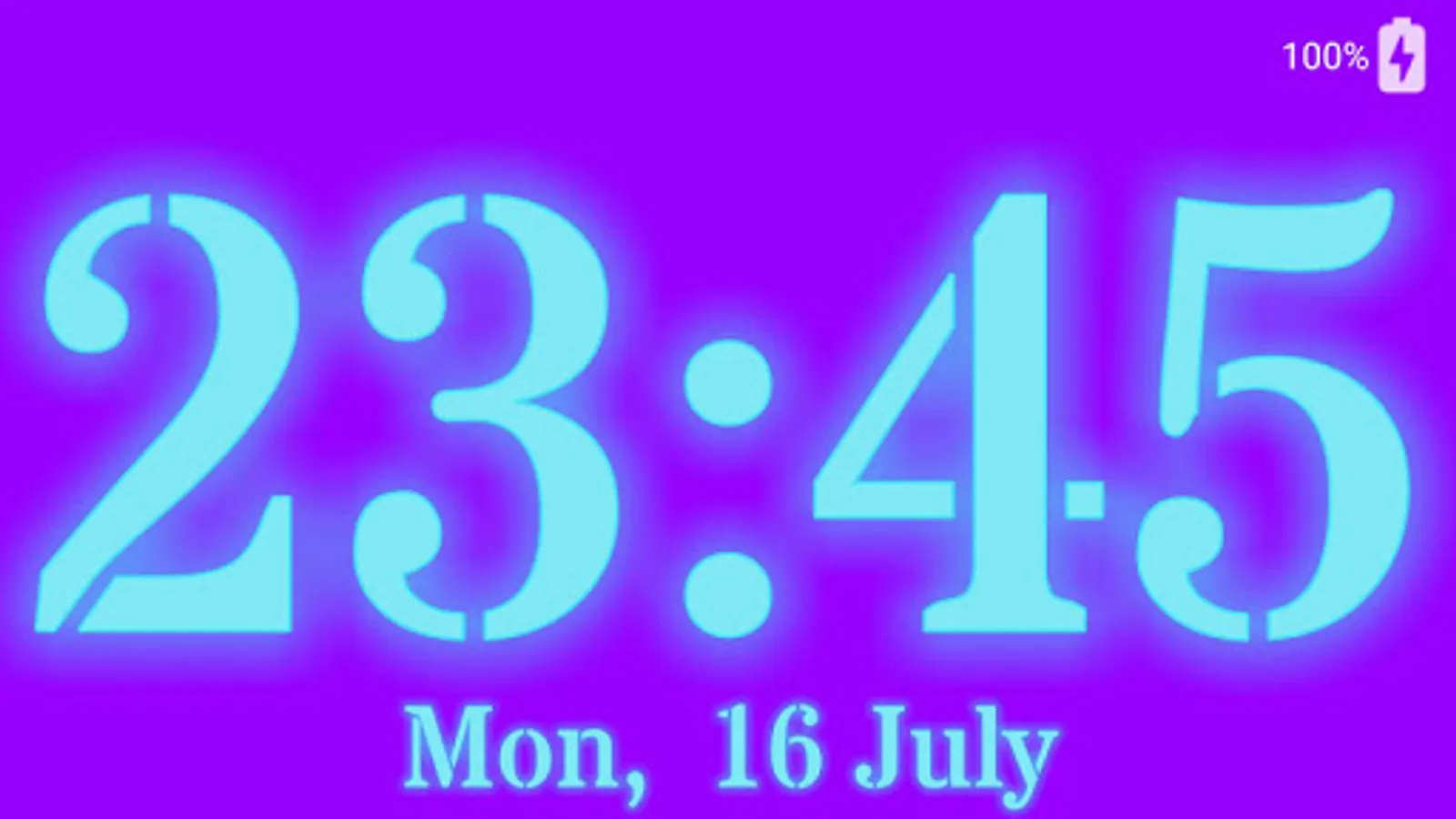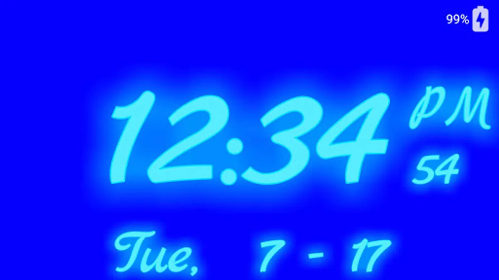 This app displays a highly customizable full screen digital clock with adjustable neon glow effect on your device. You can choose the font and date format, and have options to show seconds / date / day of the week and AM/PM marker in your device setting language. You are free to adjust the clock size, neon glow spread and color, creating the clock style you like.