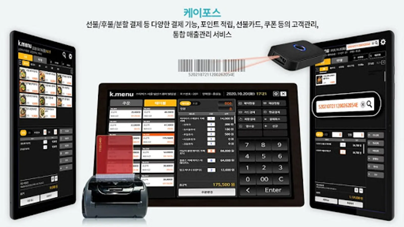 K-Menu is a service that can be used for 9,900 won per month regardless of whether you use POS, kiosk, waiting, electronic menu board, or smart order service.
