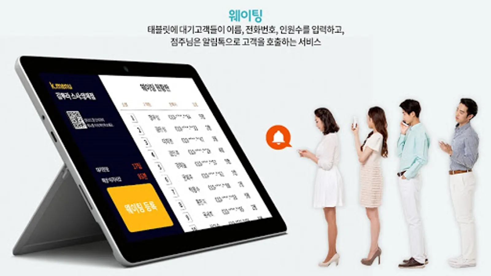 The customer enters their name / phone number / number of people on the tablet, and the store owner calls the customer through the Alim Talk service.