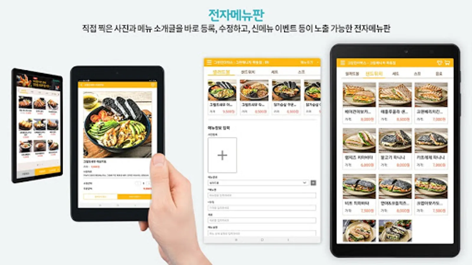Through electronic menu board and QR code scanning (provided free of charge), customers can easily place an order, and it is transmitted to the kitchen and counter in real time, enabling efficient store operation with fewer manpower.