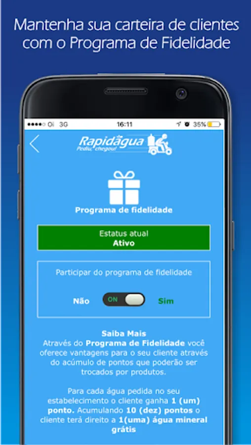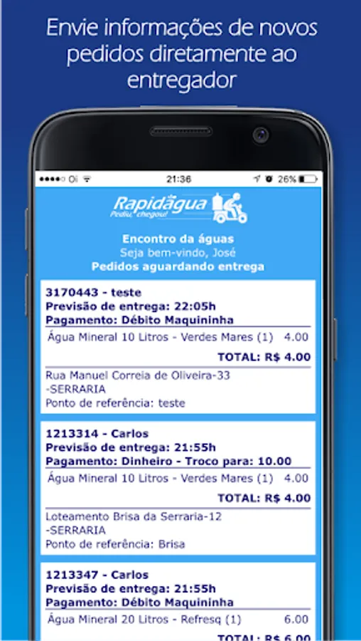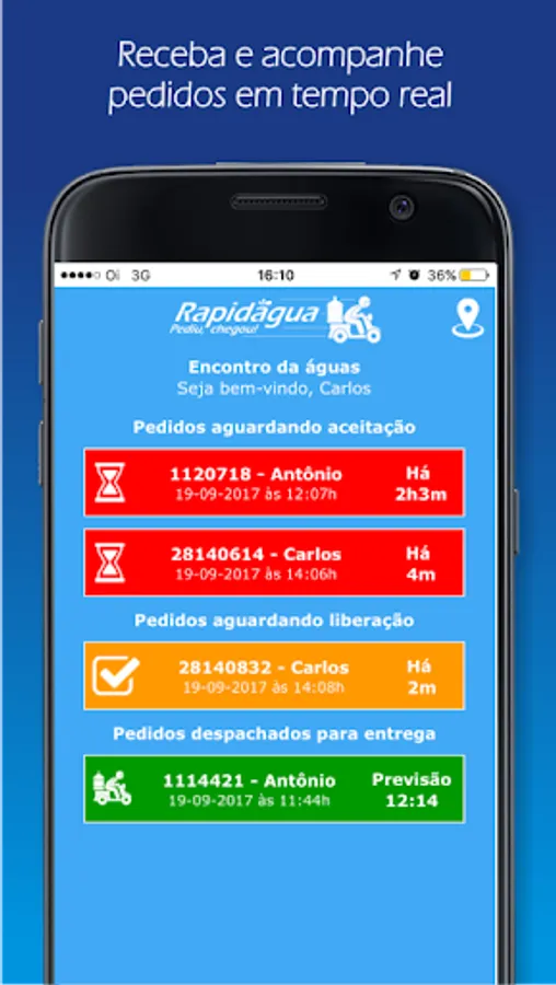 RAPIDÁGUA DISTRIBUIDOR is an APP for WATER DISTRIBUTORS that use our platform to receive orders.