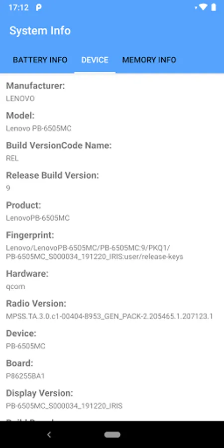 Information Related to Battery, Memory, Device.
