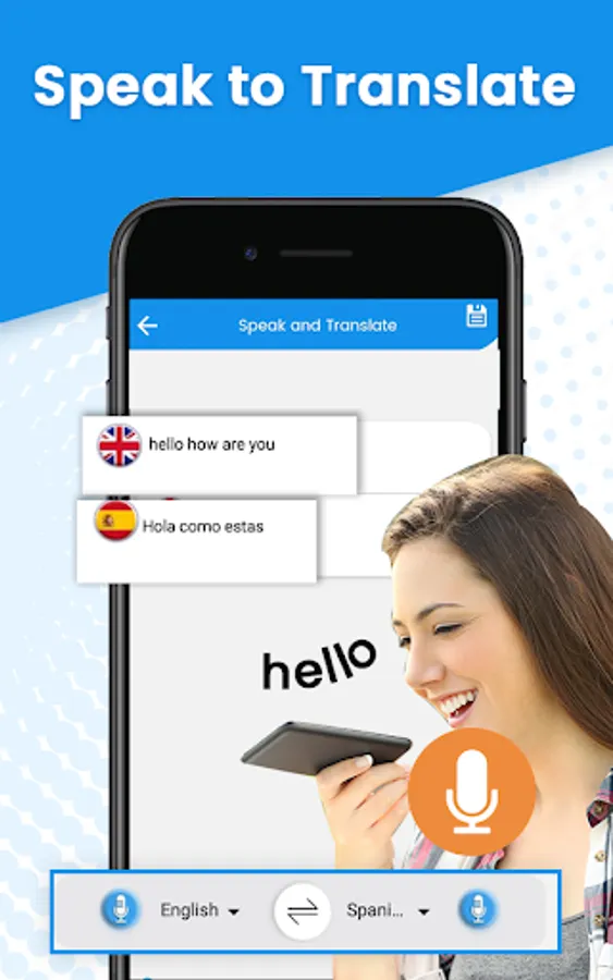 Word pronunciation and spell checker app give speak and translate feature. In voice to text feature just click on mic button and your voice will be converted into audio to text. Speak to translate supports 100+ languages. you can translate your text into any language you need. This speak & translate language (STT) will support different features like copy, share, save and delete your translated text.