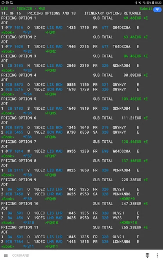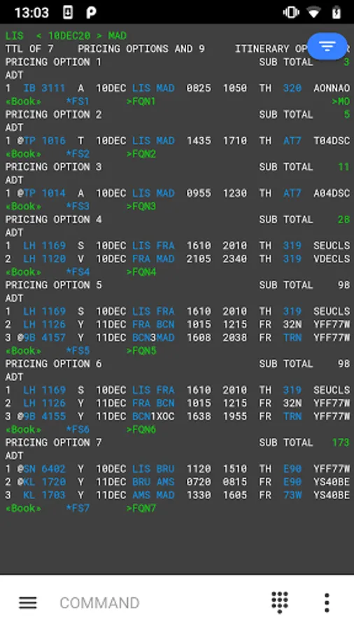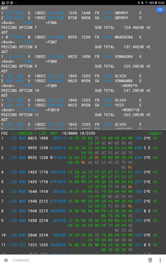 To improve the interaction with the GDS in the mobile environment, Travelport Mobile Agent offers linked commands, allowing the travel agent to touch on screen commands to execute them instead of having to write them.