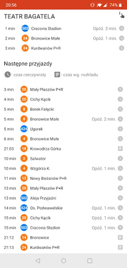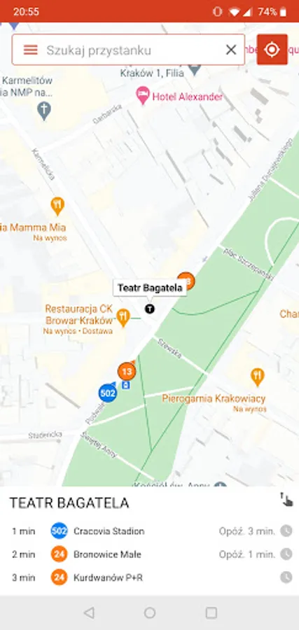 In the app, you can see the position of trams and buses on the map and check when they will be at your stop. You can also check upcoming trams for every tram stop.