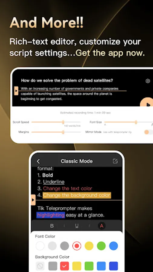 In Tik,You can set the script font and scroll speed in advance and then read the script during the recording video.