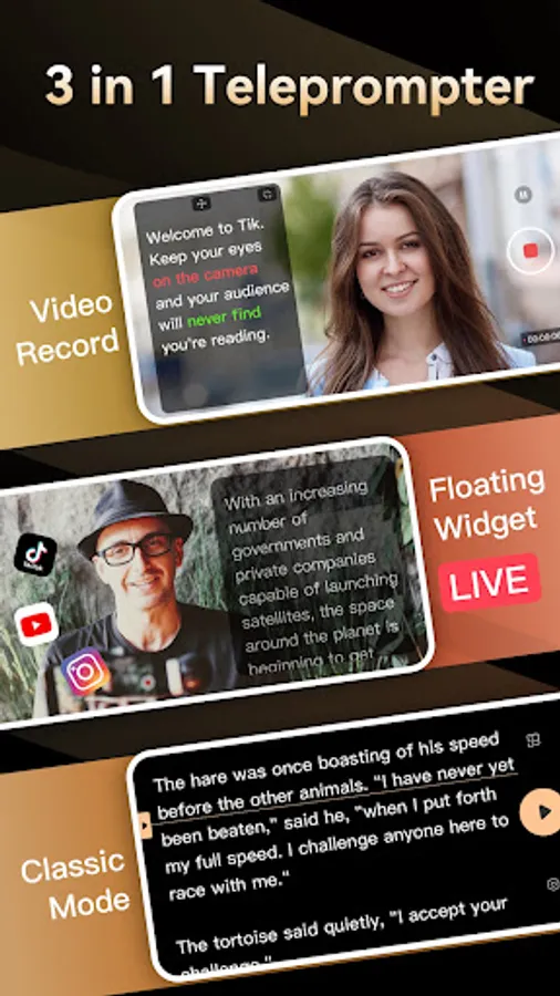 Tik is a wonderful teleprompter app for video creators to record vlogs, short videos, news recordings, online class recordings, online defenses, online interviews, video interviews, video presentations, online live streaming, video conferences...