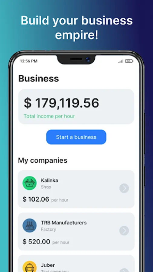 In Business Empire: RichMan you can open businesses in six different categories, buy shares in famous companies, buy real estate in the most elite areas of the world, and spend money to expand your own fleet and hangar.