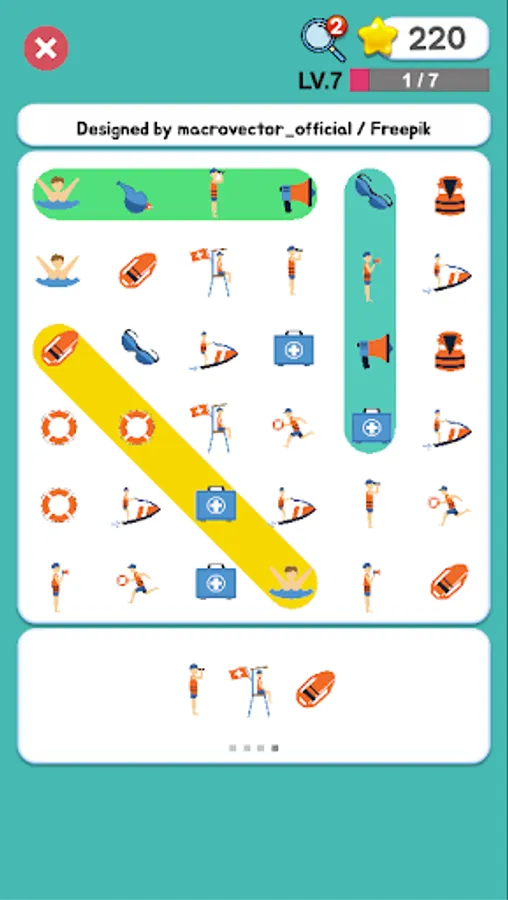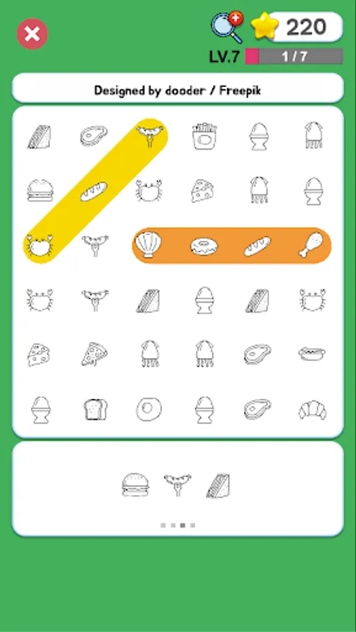 The goal is to find hidden patterns in horizontal, vertical or diagonal positions among the images displayed on the screen. Some patterns are written backwards and should be read in reverse, so be careful!