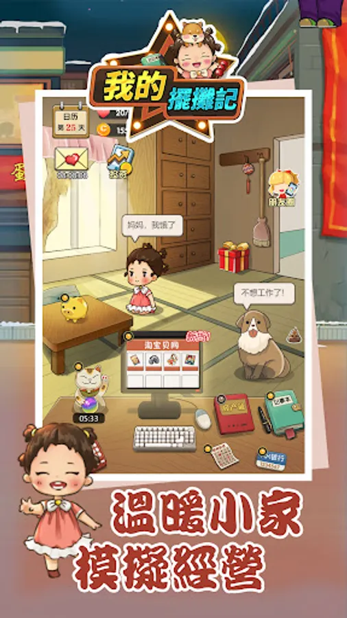 Game introduction: Welcome to "My Stall", which is a business simulation game that allows you to act as a mother and raise your daughter by running a business. You will face various challenges and adventures to generate income in the shortest possible time to ensure the growth and happiness of your daughter.