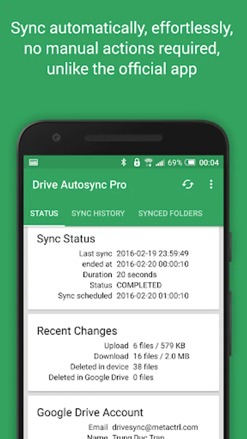 Please check out our website (http://metactrl.com/) for more information about the app, including User's Guide (http://metactrl.com/userguide/) and FAQ (http://metactrl.com/faq/). If you run into any issues or have suggestions for improvements, don't hesitate to email us at drivesync@metactrl.com. We will do our best to assist you.