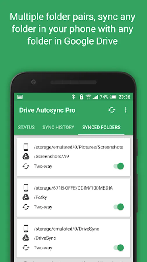 This app is an automatic file sync and backup tool. It lets you automatically synchronize files and folders with Google Drive cloud storage and with your other devices. It is an ideal tool for photo sync, document and file backup, automatic file transfer, automatic file sharing between devices,...